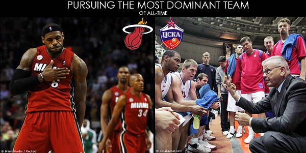 Miami Heat parcurge un sezon fantastic. După câștigarea celui de-al doilea titlu NBA, trupa condusă din teren de către LeBron James, are o serie activă de 23 victorii consecutive. Acesta este al doilea șir ca lungime de succese înlănțuite pentru o echipă din NBA în întreaga istorie a competiției.