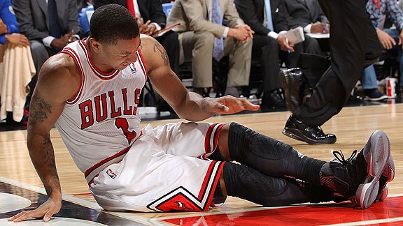 Fundașul celor de la Chicago Bulls, Derrick Rose s-a accidentat la genunchiul drept, în timpul partidei pe care echipa a jucat-o cu Portland Trail Blazers. Rose a părăsit parchetul în sfertul 3 și nu a mai revenit. La acel moment avea 20 de puncte marcate și 3 recuperări.