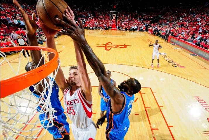 Texanii au înscris 38 de puncte în sfertul al 3-lea, atunci când au transformat un handicap de șapte puncte într-un avantaj de șapte lungimi. Pe final Rockets au avut dificultăți în a puncta, ultimul coș din acțiune fiind consemnat cu mai bine de trei minute rămase din timpul de joc. Totuși, Thunder nu a reușit să întoarcă soarta meciului. Kevin Durant a comit un fault în atac, iar Reggie Jackson și Serge Ibaka au ratat pe ultima posesie a partidei permițându-i lui Houston să-și prelungească sezonul.
