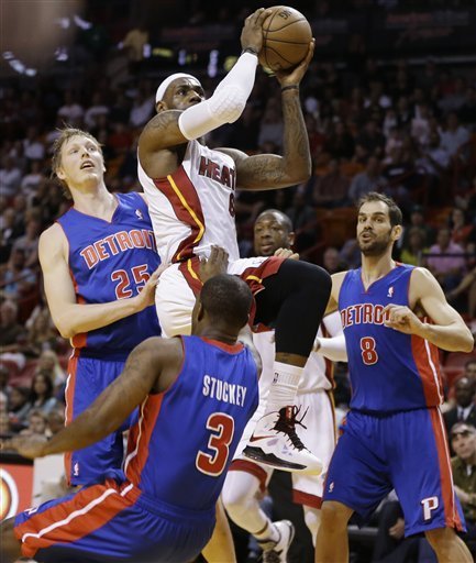 „Regele” a fost cel mai bun om pentru Miami. El a marcat 29 de puncte și a înregistrat 8 pase decisive și tot atâtea recuperări. Dwayne Wade a înscris 19 puncte. De cealaltă parte, Greg Monroe a avut 23 de puncte și 15 recuperări pentru Detroit (singurul double-double al partidei), iar Kyle Singler, 18 puncte și 8 recuperări.