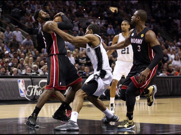 Primul sfert al partidei a fost unul în care exprimarea celor două ofensive s-a ridicat la un nivel demn de finala ligii profesioniste de baschet nord american. Chiar din startul meciului Miami a arătat determinare iar la finalul primei secvențe scorul era 26-29. În sfertul secund echipele au lăsat-o mai moale cu ofensiva dar jocul a rămas unul cu ritm alert. Tony Parker și-a condus echipa în prima repriză, cu 15 puncte marcate. Tabela a rămas încremenită la scorul de 49-49, la păuză, după ce Chris Bosh nu a finalizat la timp prin slam dunk. După pauză a urmat un joc de-a șoarecele și pisică, în care Heat se distanța iar Spurs se apropia. În ultima secvență Heat nu a mai acceptat acest joc și au reușit să se distanțeze decisiv. La jumătatea sfertului au handicapul celor de la Spurs era de 13 puncte, scor 85-98. După câteva momente de joc confuz, Gregg Popovich a renunțat să spere la o revenire și a trimis garnitura secundă pe parchet. Tabela a închis-o LeBron James printr-un coș de 3 puncte, care ducea scorul la 93-109.