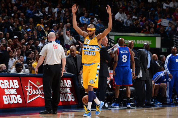 Meciul a avut o desfășurare oscilantă, însă cel mai mare avantaj a fost de 9 puncte pentru ambele echipe. Oaspeții din Pennsylvania au intrat mai bine ăn meci și au reușit să câștige prima perioadă de joc cu 22-17, după o prestație excelentă a pivotului Spencer Hawes. Sfertul secund a fost unul de coșmar pentru Sixers datorită tandemului „Andre”, Igoudala și Miller au strâns 10 puncte și au făcut ca scorul sfertului secund să fie 34-22, astfel la pauză Nuggets era în control, scor 51-44. După pauză gazdele parcă și-au uitat aruncările la vestiar, deoarece în sfertul trei au avut o perioadă de bine de 3 minute în care nu au reușit să înscrie, cu toate acestea Philadelphia 76ers nu a reușit să se impună în cu scorul de 27-24. Sfertul decisiv a fost unul electrizant, în care 76ers avea un avantaj de 8 puncte cu 2:07 înainte de ultima sirenă. Denver a făcut un joc de revenire bun însă cu 9 secunde Philly avea un avans de 2 puncte și Evan Turner mergea la libere pentru două încercări pe care însă le-a ratat. Gazdele primeau nesperat șansa victoriei iar Corey Brewer era faultat de Wilkins în momentul în care încerca o aruncare de trei puncte. Brewer nu a greșit deloc de la linia de fault și îi ducea în avantaj minim pe Nuggets. Ultima aruncare a aparținut gazdelor care puteau câștiga însă același Wilkins a fost blocat senzaționale de Anthony Randolph și partida se încheia cu scorul de 101-100.