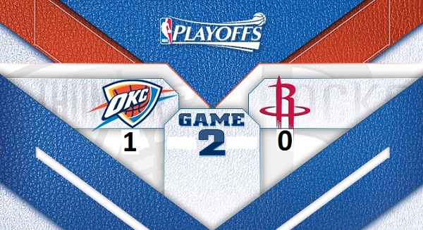 Finalista NBA din sezonul precedent și câștigătoarea sezonului regulat în Conferința Vest s-a impus în Meciul 1, scor 120-91. Ținând cont și de meciurile din sezonul regulat, când Thunder a înscris 119, 120 și 124 puncte împotriva lui Rockets, numărul mare de puncte marcate pentru finalista NBA din sezonul precedent a venit să confirme că apărarea gândită de către Kevin McHale nu poate să limiteze forța adversarului.