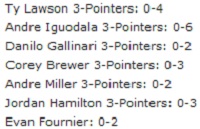 Iată statistica aruncărilor de trei puncte pentru jucătorii lui Denver: