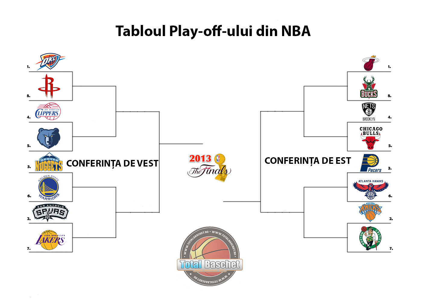 4 ani în urmăÎn urma rezultatelor din ultima zi a sezonului regulat tabloul Play-off-ului din NBA arată astfel: