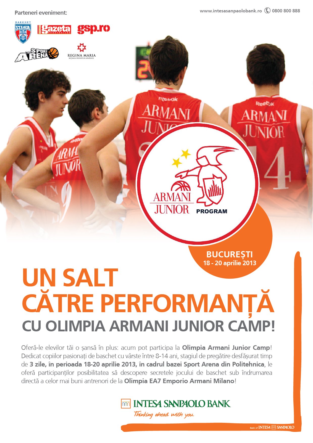 Olimpia Armani Junior Camp este conceput ca un program special de pregatire destinat copiilor, oferit gratuit de catre Intesa Sanpaolo Bank si este adresat copiilor pasionati de baschet din intreaga lume.