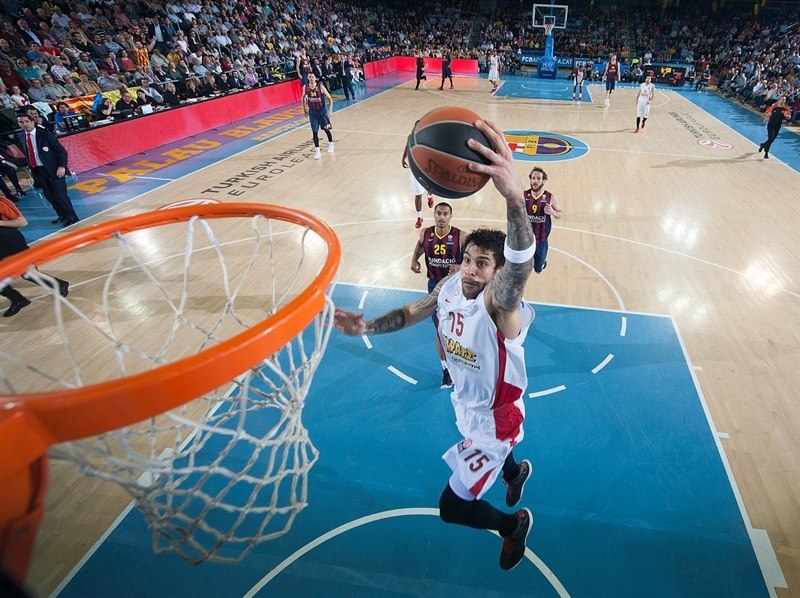 Olympiacos a egalat seria cu FC Barcelona după o prestație solidă la Palau Blaugrana în partida secundă. Cu un Georgios Printezis care a prins unul dintre cele mai bune partide ale sale din Euroligă, Olympiacos a condus partida cu catalanii de la un capăt la celălalt și nu a oferit șansa elevilor lui Xavi Pascual să se revină în meci și să se desprindă la general. După ce a câștigat fiecare perioadă de joc, fosta campioana a Europei de acum două sezoane s-a impus la final cu scorul de 76-63.