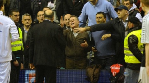 Pe de altă parte, cele două cluburi se acuză reciproc prin intermediul site-urilor oficiale pentru cele întâmplate între reprezentanții oficiali ai lui Partizan și Steaua Roșie. Mai exact antrenorul Dusko Vujosevic de o parte, respectiv vicepreședintele Nebojsa Covic de cealaltă, s-au insultat reciproc (foto 2) și au fost la un pas de a se încăiera sub privirile a mii se oameni și așa extrem de irascibili. Când doi oficiali se comportă în această manieră e foarte greu ca cineva să mai poată controla niște gurupri de ultrași. Mai ales că acest conflict a luat amploare exact în momentul în care se părea că finala Cupei Serbiei va fi reluată după o întrerupere de 45 minute.