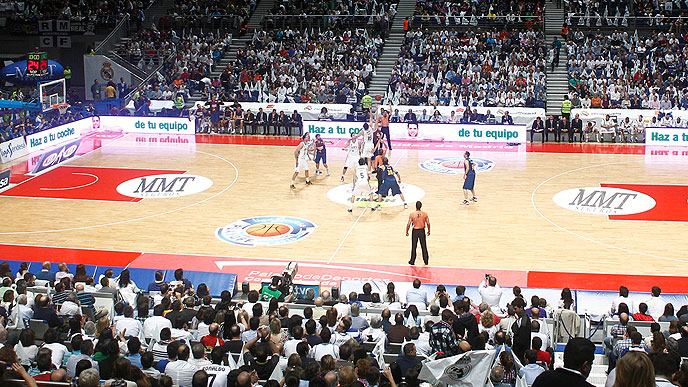 Gazdele au început mai bine și s-au instalat la conducere. Real a jucat mai precis și a beneficiat inclusiv de reușita norocoasă de la distanță a lui Sergio Llull pentru a se desprinde la 21-14, scor înregistrat la prima pauză. Lucrurile s-au schimbat esențial în secvența a doua. Barcelona și-a reglat tirul de la mare distanță. Victor Sada a înscris de patru ori din tot atâtea încercări din afara semicercului în sfertul al doilea. Navarro și Oleson au adăugat câte o triplă, iar vizitatorii au trecut la conducere. Replica a venit de la Sergio Rodriguez, autor a trei coșuri de la distanță, însă la jumătatea meciului Barcelona conducea cu scorul de 45-35.