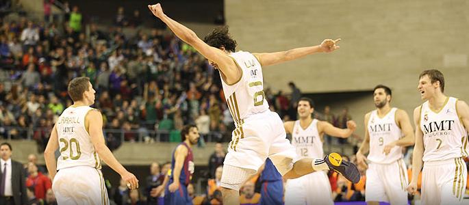 Elevii lui Pablo Laso au înscris 22 puncte pe parcursul primului sfert şi s-au desprins la cinci lungimi. Tendinţa a continuat şi la jumătatea meciului Real conducea cu scorul de 42-33. Diferenţa de nouă lungimi s-a menţinut la capătul sfertului al treilea ambele echipe marcând multe puncte. Catalanii nu au reuşit să menţină ritmul, celebra defensivă a lui Xavi Pascual fiind maltratată de tandemul Sergio Llull - Jaycee Carroll, ajutat de Nikola Mirotic, astfel încât meciul s-a încheiat cu o victorie de proporţii a madrilenilor care au avut la un moment dat chiar şi 20 de puncte pe tabela de marcaj.
