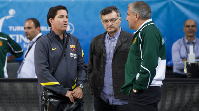 Xavi Pascual, alături de Joan Kreus (secretar general FC Barcelona) și Zeljko Obradovic