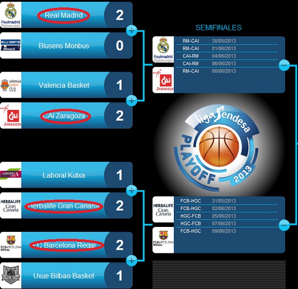 În semifinale, Zaragoza întâlnește pe Real Madrid. În cealaltă serie, Barcelona se duelează cu cealaltă revelație a sezonului, Gran Canaria.