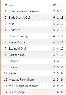 Șapte runde s-au jucat din Liga Adriatică, iar sârbii de la Steaua Roșie Belgrad (Crvena Zvezda Telekom) sunt singurii fără înfrângere din cele 14 echipe angrenate în competiție.