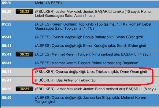 Iată și dovada pe play-by-play-ul oferit de liga din Turcia:
