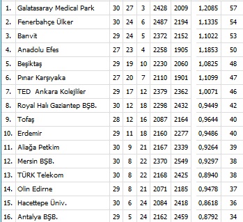 Totuși, în acest moment nu putem să vorbim despre configurația playoff-ului în condițiile în care mai sunt șase partide restante. Atât Anadolu Efes Istanbul, cât și Pinar Karsiyaka, cele două echipe care au reprezentat Turcia cu succes pe plan continental, mai au câte trei jocuri de disputat fiecare. De asemenea, Tofas Bursa și Banvit mai au de jucat un meci.