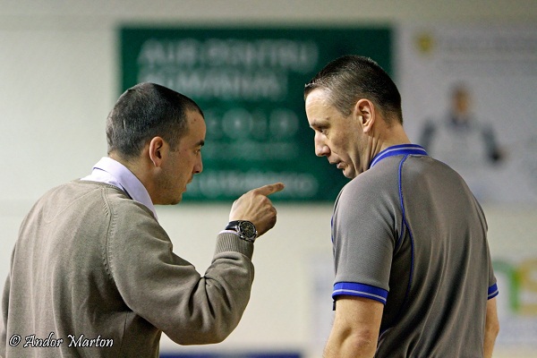 Tudor Costescu (stânga), antrenorul naționalei, respectiv Laszlo Bukuresti (drepta) arbitrul care reprezintă România la Kazan