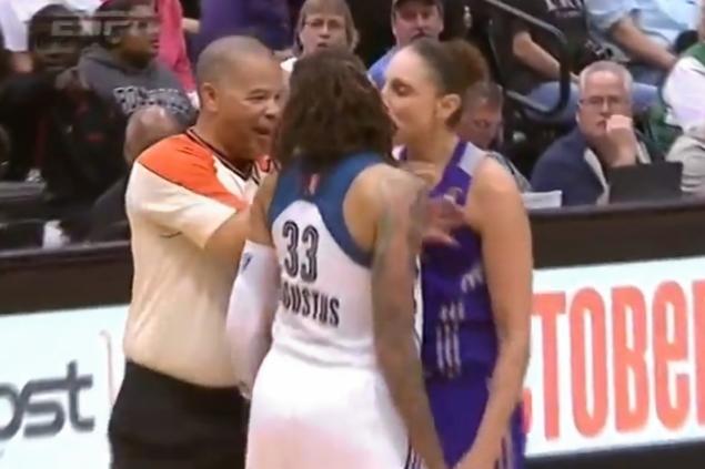 Protagonistele ineditului gest au fost Seimone Augustus şi Diana Taurasi. Cele două sunt rivale în WNBA de peste 10 ani şi după un duel mai agresiv, Taurasi a fost cea care a făcut primul pas spre împăcare. Vrând să destindă atmosfera, şi-a sărutat adversara chiar în faţa arbitrului. Acesta nu a fost deloc amuzat de scenă şi a considerat că a fost un fault intenţionat. Totuşi, momentul a făcut deliciul spectatorilor şi al comentatorilor.
