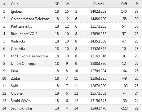 În urma acestui rezultat Igokea se desprinde la trei victorii de principala urmăritoare. Bosniacii au 15-3 și le devansează pe Steaua Roșie Belgrad respectiv Partizan Belgrad, ambele cu 12-6 la general.