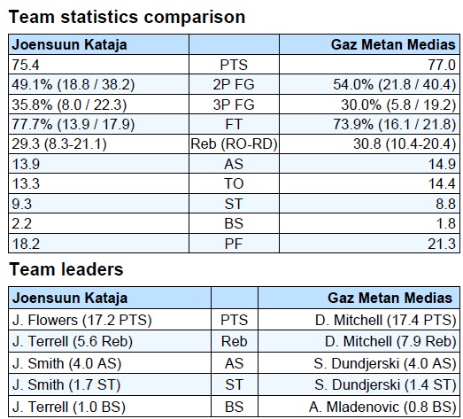 - Jonte Flowers, Petri Virtanen și Antti Kanervo marchează 52.7% din punctele lui Joensuun Kataja în EuroChallenge.