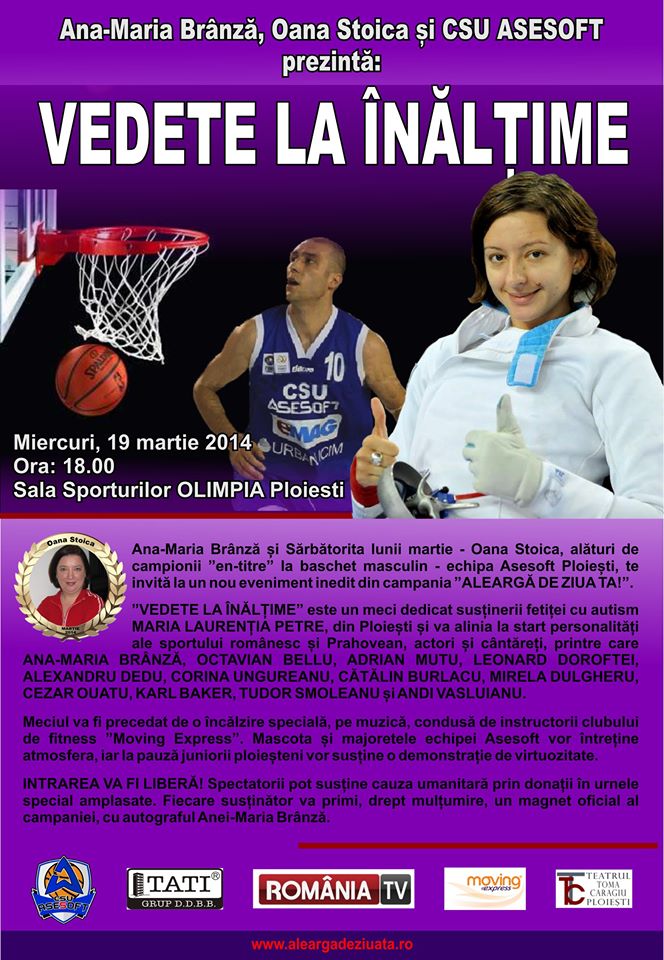 Miercuri, 19.03, cu începere de la ora 18.00 va avea loc evenimentul ”Vedete la înălțime”. Ana-Maria Brânză, CSU Asesoft și sărbătorita campaniei ”Aleargă de ziua ta!”, ploieșteanca Oana Stoica vor participa la acest eveniment.