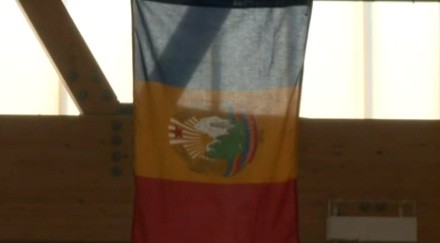 Sportivele antrenate de Dan Fleşeriu au avut parte de o surpriză atunci când au păşit pe parchetul sălii Arganda del Rey. Oganizatorii spanioli au confundat steagul naţional al României cu cel de acum mai bine de 23 de ani, cel al Republicii Socialiste Române (foto sus).