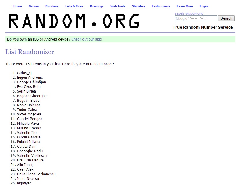 Câștigătorii, desemnați cu ajutorul site-ului random.org, sunt user-ul carlos_cj și Eugen Andronic. Aceștia sunt rugați să ne contacteze la adresa contact at totalbaschet.ro pentru a-și revendica premiul.