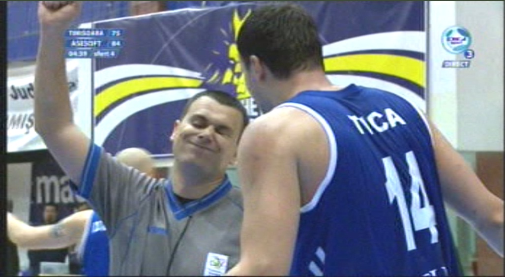 - mai întâi, în chiar primele minute, Marius Ciulin a avertizat banca Asesoftului că va fi sancţionată cu "tehnic" pentru desele vociferări ale lui Alexandru Iacobescu. În sfertul doi la fel s-a întâmplat şi cu Timişoara, cu referire la Adrian Vermeşan