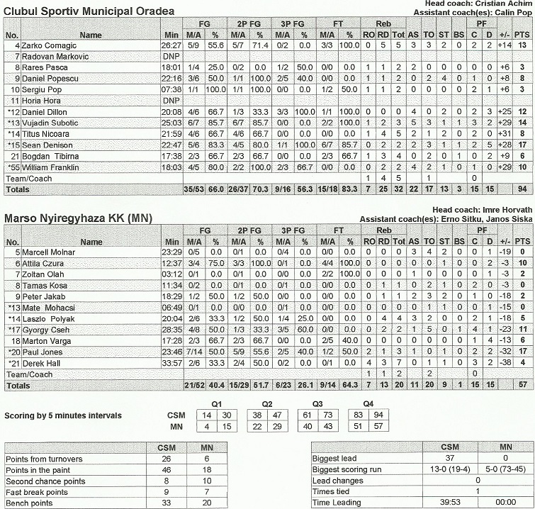 Memorialul Antonio Alexe 2013 - Statistica meciului CSM Oradea vs Marso Nyiregyhaza