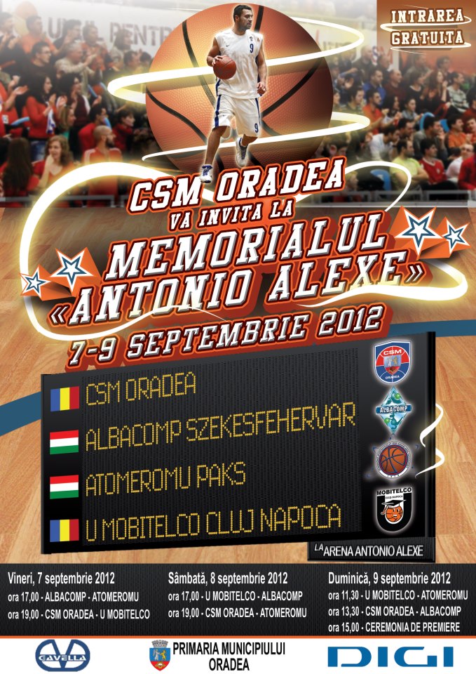 În perioada 7-9 septembrie, la Arena Antonio Alexe din Oradea, se va desfășura Memorialul Antonio Alexe. Cea de-a 3-a ediție a turneului de pregătire, oranizat sub egida CSM, aliniază la start, alături de formația locală - CSM Oradea, pe U Mobitelco Cluj-Napoca (locul 4 la încheierea sezonului anterior), respectiv formațiile maghiare Albacomp Szekesfehervar (locul 2 în faza regulată și semifinalistă în ultima ediție de campionat) și Atomeromu Paks (locul 5 și eliminată în primul tur al playoff-ului).