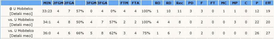 Iată linia statistică a lui Sarovic în cele trei partide: