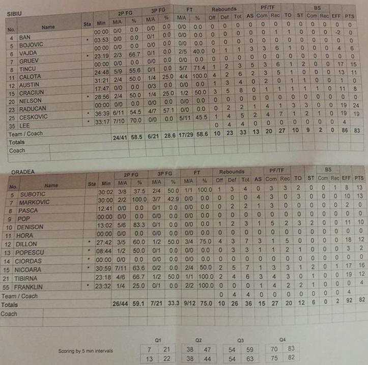 Statistica meciului CSU Sibiu vs CSM Oradea