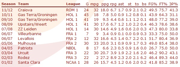 Statisticile lui Ross în perioada petrecută în Europa, ultimul sezon din NCAA și cel petrecut în NBDL este următoarea: