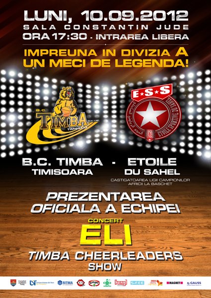 "Urşii" îşi vor face debutul în faţa propriilor suporteri într-un meci de gală, în care adversar va fi Etoile du Sahel, nimeni alta decât campioana Africii. Tunisienii au reuşit tripla în sezonul recent încheiat: campionat, Cupă şi Liga Campionilor Africii, toate avândul pe bancă pe actualul antrenor al lui CSU Sibiu, Dragan Petricevic. Astfel, BC Timba încearcă să intre frumos pe prima scenă a baschetului românesc şi să organizeze în mod profesionist momentul primei întâlniri cu fanii.