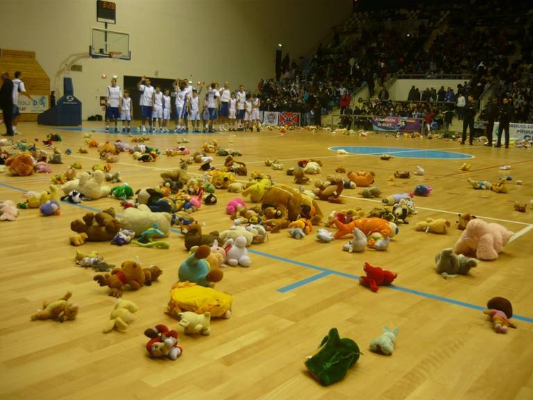 Astfel, craiovenii care îşi propun să urmărească meciul de baschet SCM Universitatea Craiova – Steaua CSM București în calitate de spectatori sunt rugaţi să vină la evenimentul sportiv cu jucării de pluș. La inceputul meciului, ele vor fi aruncate pe parchetul sălii, vor fi strânse și igienizate, iar apoi vor fi donate copiilor instituționalizați din Craiova. Clubul din Bănie organizat o acţiune similară, la începutul meciului dintre Craiova și Asesoft din 2013, dar și în 2012 înaintea partidei contra celor de la Gaz Metan Mediaș.