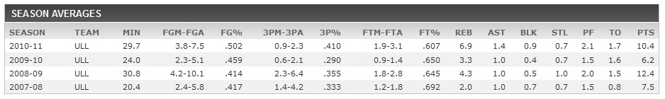 Întreaga line statistică din colegiu a lui Travis Bureau o puteţi vizualiza în cele ce urmează: